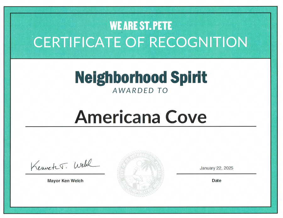More than just a beautiful place to live, Americana Cove is a testament to the incredible spirit of its residents. Recently honored with a We Are St. Pete Certificate of Recognition for their remarkable unity and resilience in the face of the 2024 hurricanes, this is a community that truly cares for one another. Discover the warmth and unwavering support that make Americana Cove not just a residence, but a place you’ll truly love to call home.